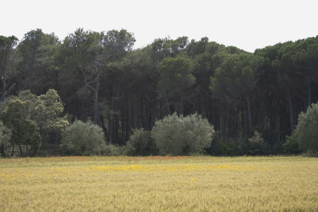 Zwar fühlen sich dieses Jahr Ende Mai die Temperaturen an der Costa Brava nur an manchen Tagen, und dann auch nur tagsüber, nach Sommer an, doch auf den Wiesen und Felder blüht es frühsommerlich gelb und vor allem rot. Gelbe Färberkamille und roter Klatschmohn geben zwischen Gras und Getreide die für’s Auge hübschen Kontraste.