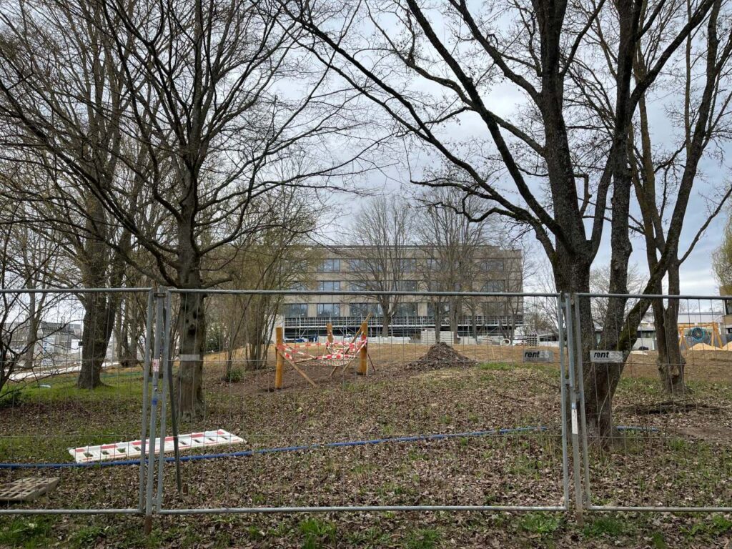 Bei fortgeschrittenem Baugeschehen passieren die meisten Veränderungen vor allem im Inneren der Gebäude. Das schließt die Beobachter von außen erst einmal aus, außer sie haben die Chance einmal hinter die Kulissen bzw. Zäune und Absperrungen zu schauen. Diese Möglichkeit bekam ich im Neubau für meine ehemalige Schule. Meine Nachfolgerin in Sachen Kunst und Schulgarten zeigte mir Ende Mai das Gebäude und, vor allem, den neuen Kunstraum plus Nebenräumen! Ich freue mich für die KollegInnen, die momentan mit ihren Klassen am Packen sind.