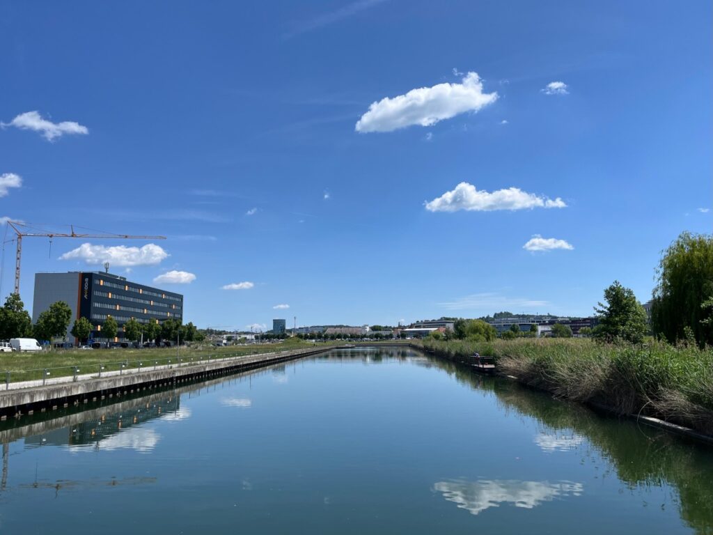 Zuletzt noch ein Blick über den Langen See in Richtung Meilenwerk im ehemaligen Flughafengebäude vom Flughafen Böblingen/Stuttgart